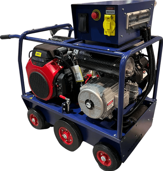 Experience the world’s smallest 32kW powerhouse. This revolutionary generator has been meticulously designed to set new standards in efficiency and portability. It boasts a stunning 32kW of 480V dual phase power; single and 3 phase, all packed into a compact unit. Weighing just under 900lbs, this generator eliminates the need for cumbersome tow-behind setups. Equipped with an advanced radial flux alternator, it excels in high-frequency and inductive load capabilities. The 32kW generator incorporates a substantial 13.2 gallon fuel tank, ensuring uninterrupted operation throughout the day.