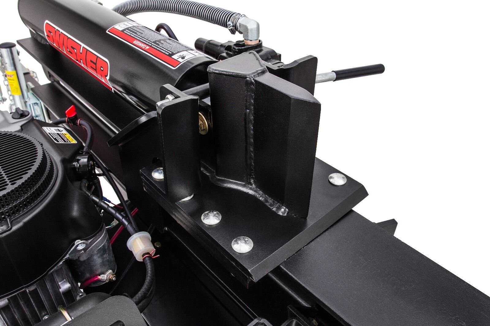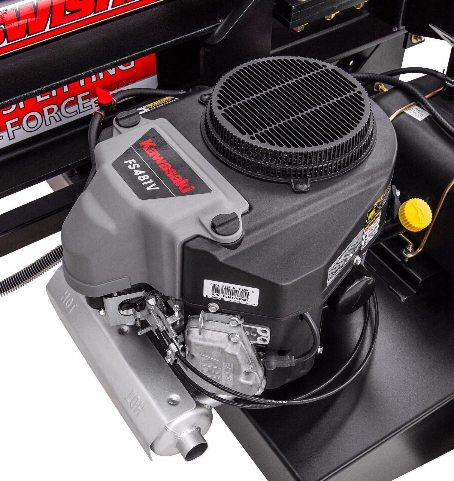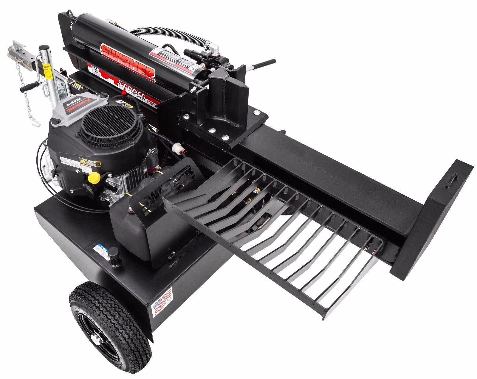 The Swisher 14.5HP (603cc) Commercial Grade log splitter features a powerful Kawasaki electric start engine to ensure top end performance. The direct drive splitter offers 34 Tons of splitting force. The heavy-duty 2-stage 22 GPM pump provides maximum splitting performance and optimum cycle time. The splitter can function in both horizontal and vertical splitting positions. The adjustable wheeled front stand allows for easier adjusting, hitching and moving.